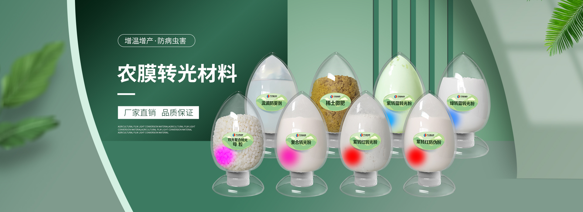 我公司前身為2011年成立的淄博舜明熒光科技有限公司。隨著公司的發展,廠址從淄博搬遷到青島,2020年5月公司重新注冊為山東齊舜新材料有限公司。公司注冊資本2000萬元,主要從事新材料研究和開發。目前主要產品包括:農膜用轉光粉、轉光母粒以及轉光農膜;農膜用長效防霧流滴涂覆液;復合肥添加劑及葉面肥(稀土微肥);防偽粉;LED封裝熒光粉;夜光粉;太陽能光伏電池增效熒光粉;鋰電池正極材料等。